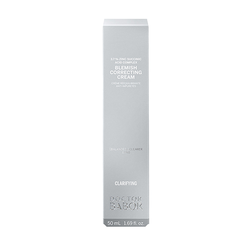 Das Herzstück jeder BABOR Formel sind sichtbare Ergebnisse. Die sanfte, hocheffektive DOCTOR BABOR CLARIFYING Blemish Correcting Cream wurde speziell zur täglichen Pflege für empfindliche, unreine Haut mit Talgdrüsenüberfunktion entwickelt. Bestehende Pickelmale und Unterlagerungen werden effektiv gemildert und der Entstehung neuer Unreinheiten, am häufigsten verursacht durch physischen oder psychischen Stress, entgegengewirkt. Mit dem Ziel den Teufelskreis der Pickelentstehung und -bekämpfung langfristig erfolgreich zu durchbrechen, löst der antibakterielle 3,7% Zinc Succinic Acid Komplex Verhornungen, wodurch der Talgabfluss unterstützt und somit die Neuentstehung von Hautunreinheiten und Entzündungen minimiert werden kann. Der natürliche Lipidgehalt der Haut wird bei regelmäßiger Anwendung ausgleichend unterstützt. Somit werden verstopfte Poren verhindert und die Haut gleichzeitig vor verunreinigungsfördernder Austrocknung geschützt. Die leichte Creme versorgt die Haut zusätzlich intensiv mit Feuchtigkeit und verleiht bei regelmäßiger Anwendung einen ebenmäßigen, umfassend gepflegten und geklärten Teint. Angereichert mit dem DOCTOR BABOR exklusiven BIOGEN PLANT EXTRAKT, die Krönung der Babor Forschung, werden die hauteigenen Prozesse angeregt und somit die jugendliche Agilität der Haut gefördert.