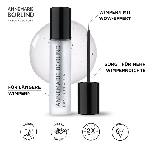 Kraftvolle Wimpern verdienen eine starke Pflege. Der innovative Wirkstoff des LASH CREATOR EYELASH SERUM aus Wiesenklee- und Mungbohnen stimuliert das natürliche Wachstum bestehender sowie neuer Wimpern und sorgt für mehr Wimperndichte. Brüchigen Wimpern wird neue Power und Flexibilität verliehen, was vorzeitigem Wimpernverlust vorbeugt. Für einen ausdrucksstarken Wimpernaufschlag und lange voluminöse Wimpern. Zur äußeren Anwendung. Bei Augenkontakt gründlich mit Wasser ausspülen, um Rötungen und Irritationen zu vermeiden.