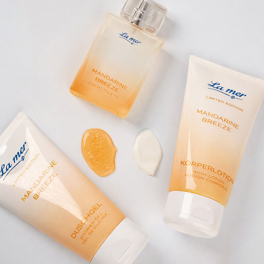 Das Mandarine Breeze Set vereint das komplette Dufterlebnis in einer hochwertigen Kosmetiktasche – perfekt für Zuhause und unterwegs. Das belebende Duschgel reinigt sanft und spendet bereits unter der Dusche Feuchtigkeit, während die samtige Körperlotion die Haut intensiv pflegt, geschmeidig weich macht und ihre natürliche Schutzbarriere stärkt. Abgerundet wird das Pflege-Ritual durch das Mandarine Breeze Eau de Toilette, das den fruchtig-frischen Duft langanhaltend auf der Haut bewahrt.