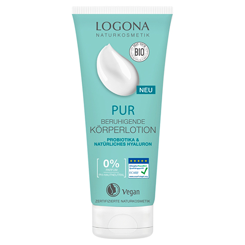 Die Logona Pur Beruhigende Körperlotion wirkt ausgleichend, rückfettend und spendet der Haut intensive Feuchtigkeit. Die ph-hautneutrale Textur mit natürlichem Probiotika & Hyaluron unterstützt die Hautschutzbarriere und mildert Hautirritationen. Sie ist gut verträglich und zieht schnell ein: natürlich pur, vegan & ohne Parfum. Dermatologisch getestet. Bei empfindlicher Haut ist die Hautschutzbarriere geschwächt und das Haut-Mikrobiom kann im Ungleichgewicht sein. Juckreiz und Rötungen können Folgen sein. Probiotika unterstützen das Gleichgewicht des Mikrobioms. Die natürliche Widerstandskraft der Hautschutzbarriere wird gestärkt und sie kann sich besser gegen Umwelteinflüsse schützen.